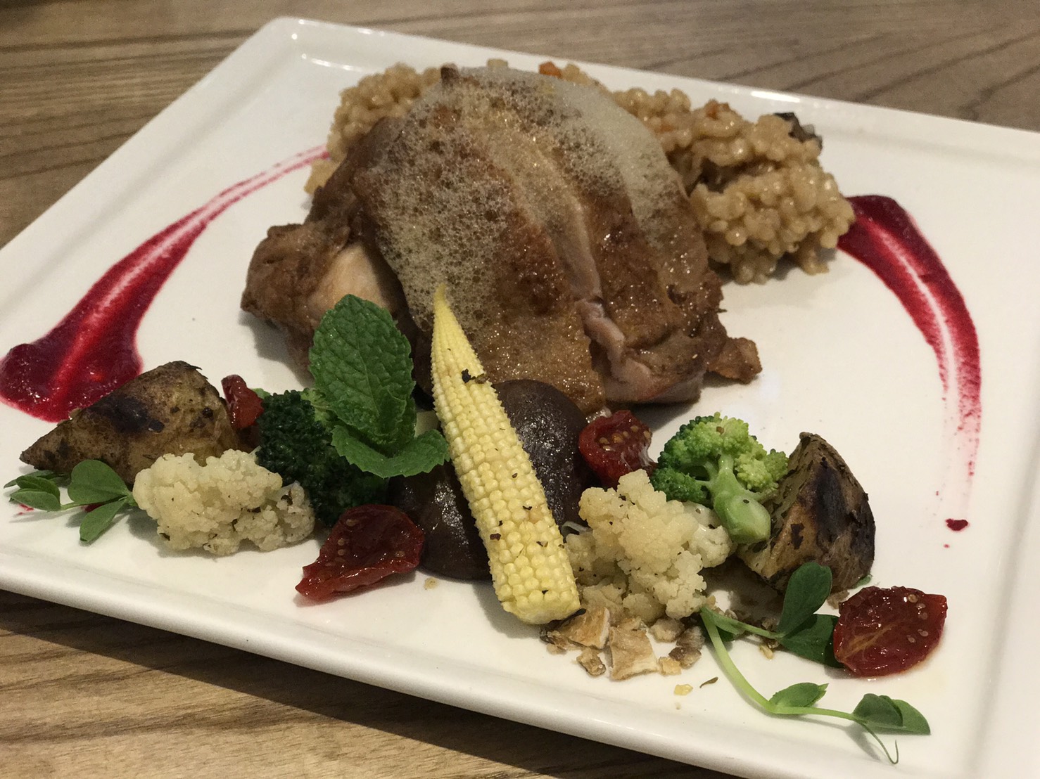 餐廳菜色選用吃紅玉紅茶的紅玉雞搭配香菇野菜燉飯、現烤季節蔬菜的「十八養場紹興燜雞」,雞肉口感韌實、打成泡沫的醬汁酒氣鮮明; 選用彰化芳苑的溫體櫻桃鴨胸肉的「七日熟成春水鴨胸」,鴨皮酥潤、鴨肉細嫰; 香冬菇的做成的茶水點心則有香菇紅茶、香菇餅乾、香菇麵包等,嘗得到香菇的百變風味。有機會來一趟「菇事所 good thing」,嘗嘗香菇料理華麗轉身,還有機會聽見香菇訴說的台灣風土故事。